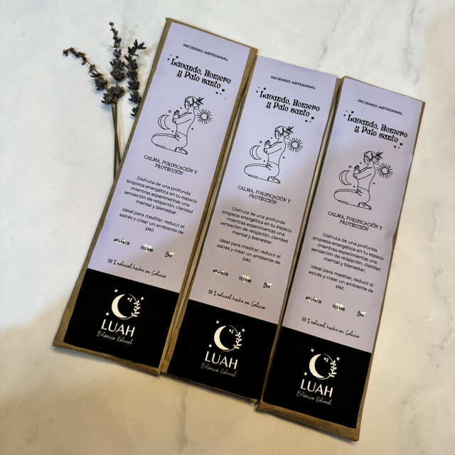 Incienso artesanal de lavanda, romero y palo santo
